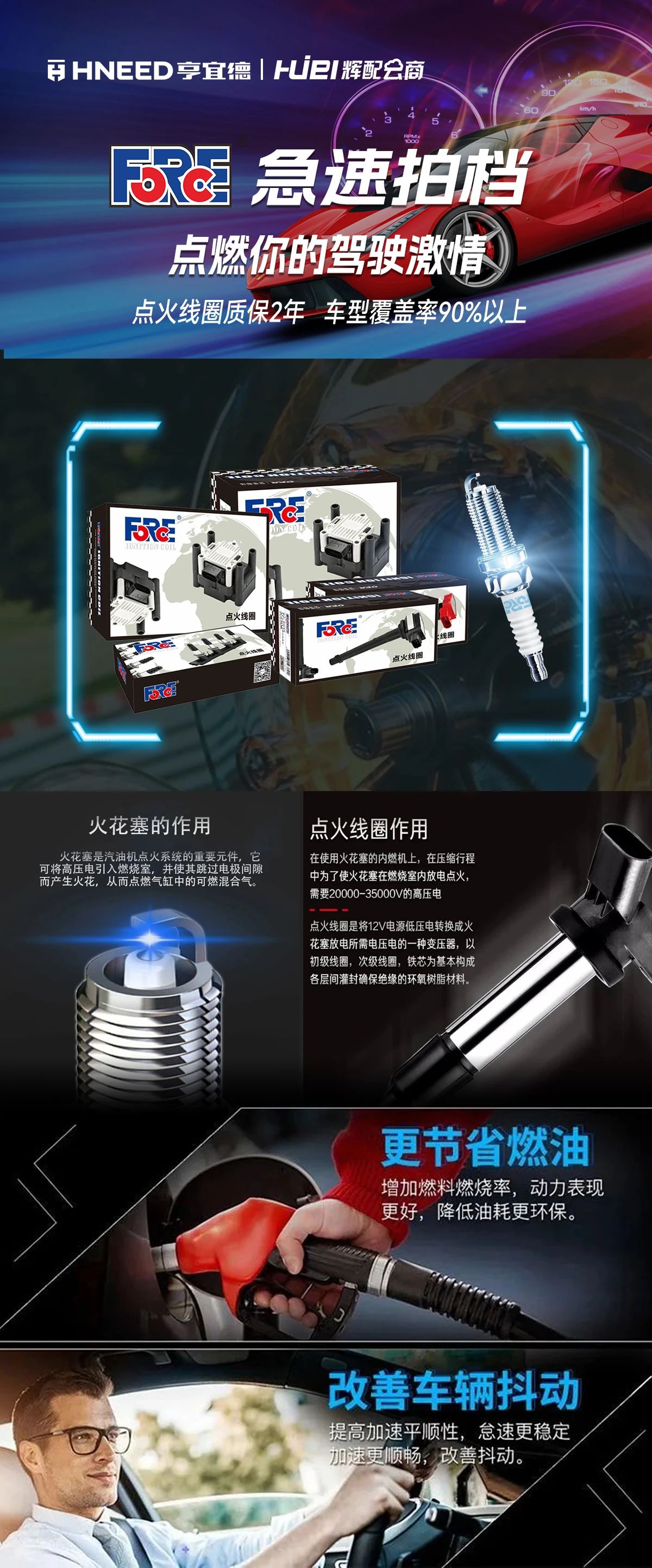 福士点火线圈跟火花塞急速拍档,就能很好满足车友们的需求,OE质量标准,具有耐高温、耐腐蚀的特性有效解决低速抖动、提速乏力、点火不畅、油耗增高系列问题。进而大大提高了发动机性能!