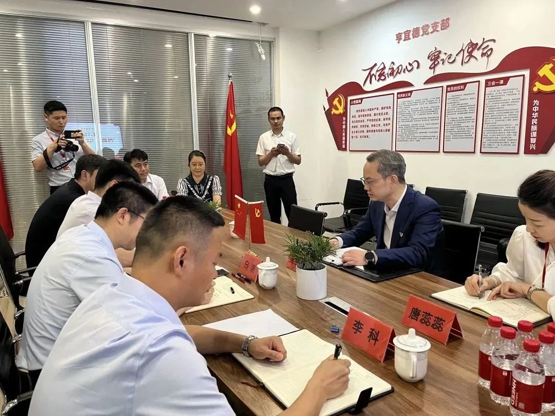 2023年4月19日上午,成都高新区石羊街道党工委书记白波、党工委副书记刘海登一行,莅临亨宜德党支部交流指导,实地了解支部党建工作开展情况。
