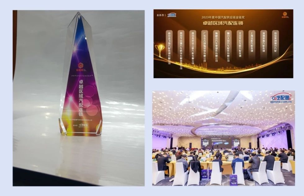 由汽配圈颁发的卓越区域汽配连锁奖等四项荣誉奖项