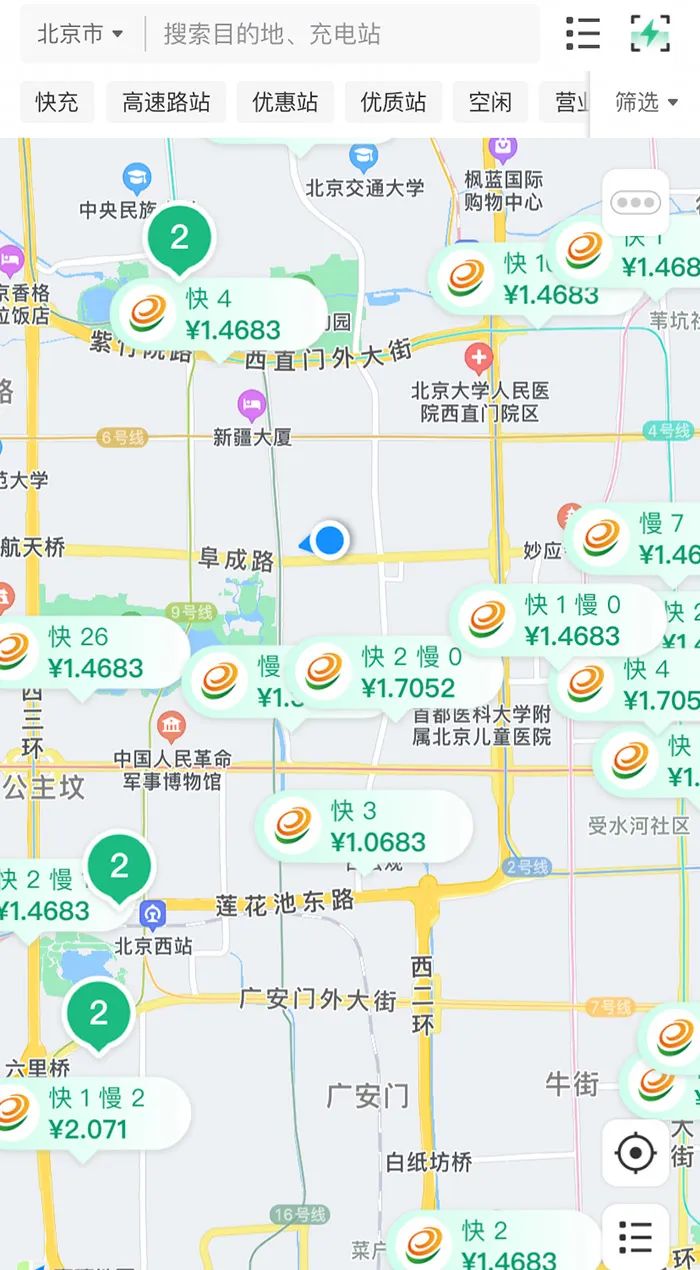中新财经查询相关充电APP发现,白天时段,几乎没有每度电在1元以下的充电桩。下午电价平峰时段,快充桩的价格普遍在1.4元/度左右;傍晚高峰时段,价格则上浮至1.7元/度以上;此外,还有部分充电桩的价格已经突破了2元/度。