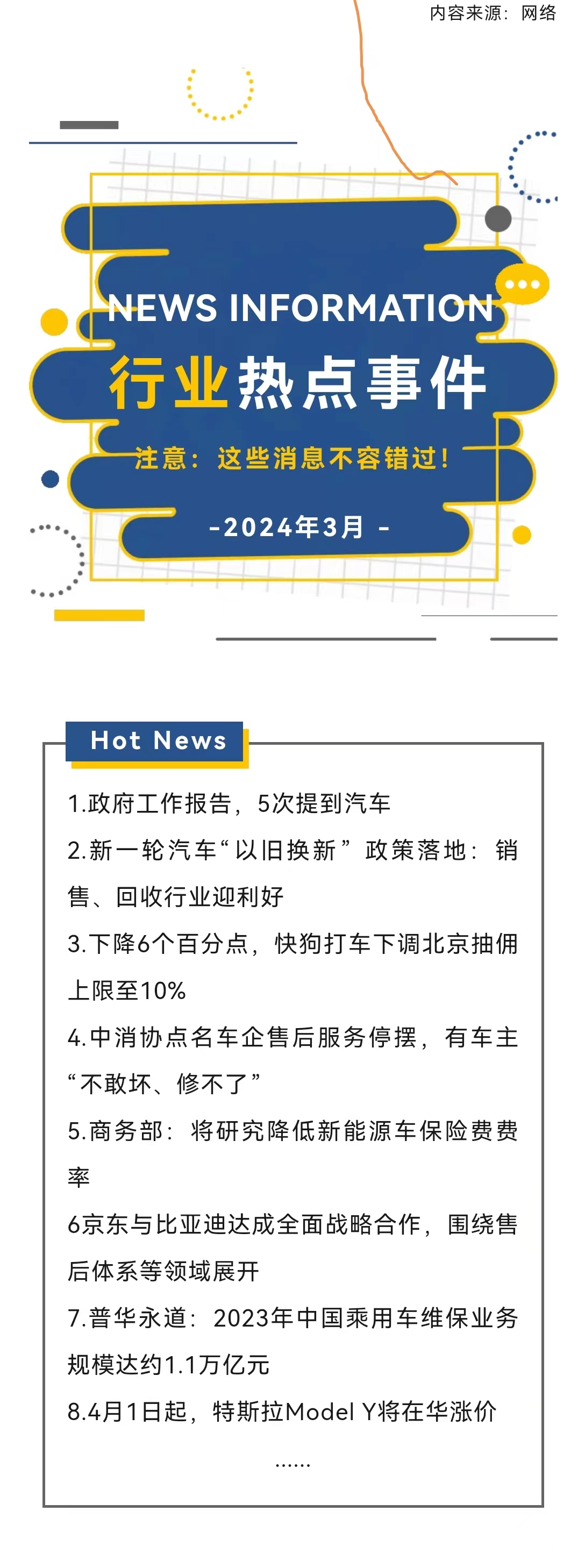 3月行业大事件|政府工作报告,5次提到汽车;2023年中国乘用车维保业务规模达约1.1万亿元;新一轮汽车“以旧换新”政策落地